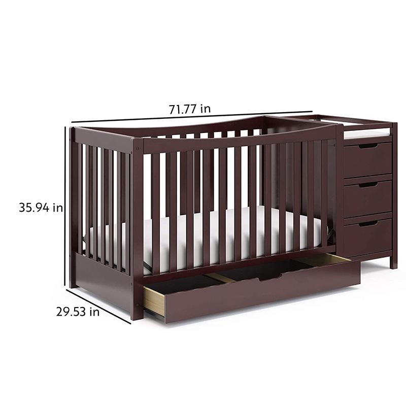 यह बहुउपयोगी है, आप इसे पालने से लेकर बच्चों के बिस्तर, दिन के बिस्तर और फिर पूरे आकार के बिस्तर में बदल सकते हैं। यह ठोस देवदार की लकड़ी से बना है। इस पालने में एक हटाने योग्य चेंजिंग टेबल और 3 विशाल दराज हैं। बिस्तर के नीचे ज़रूरी सामान रखने के लिए एक बड़ा दराज भी है। इस पालने का MOQ 200 पीस है।